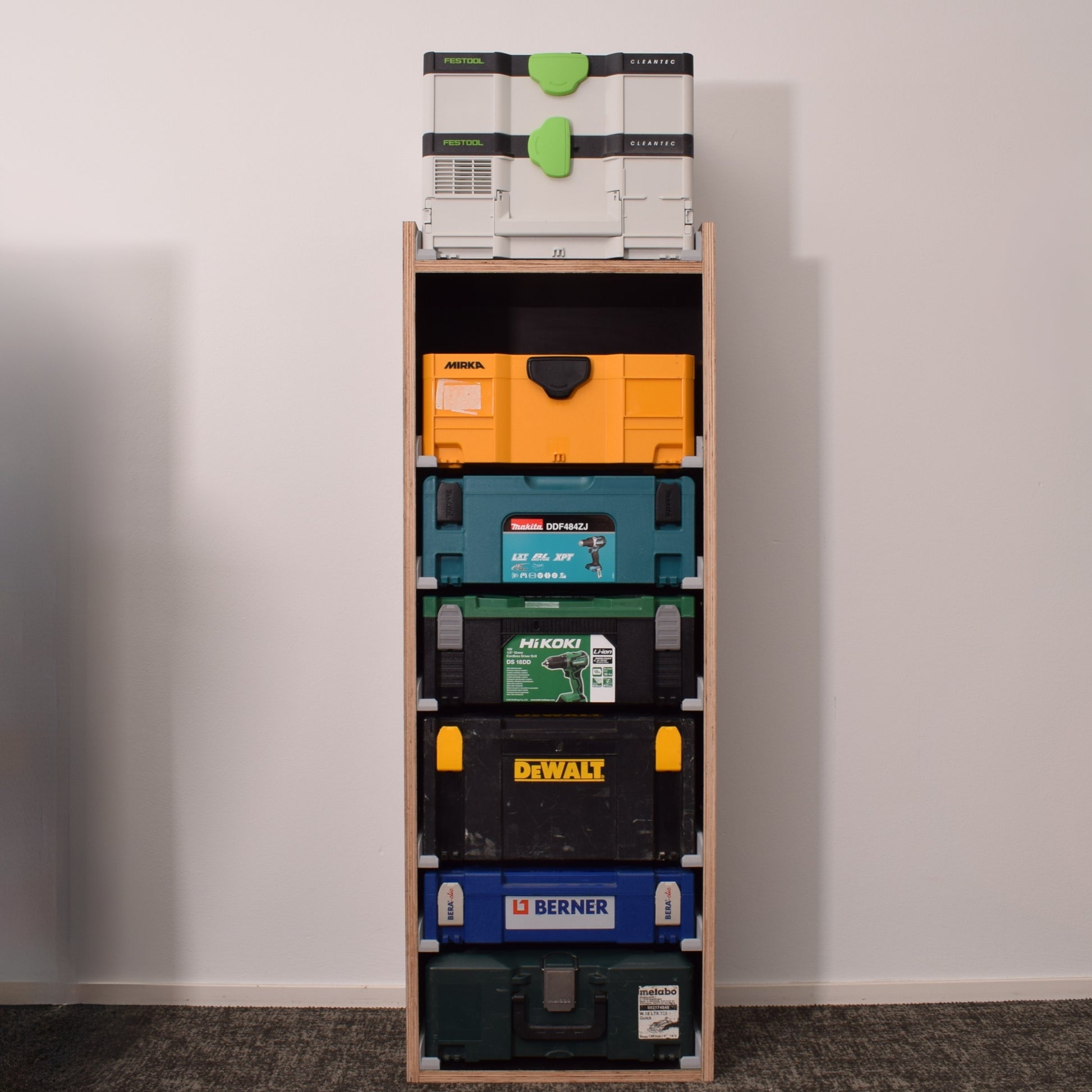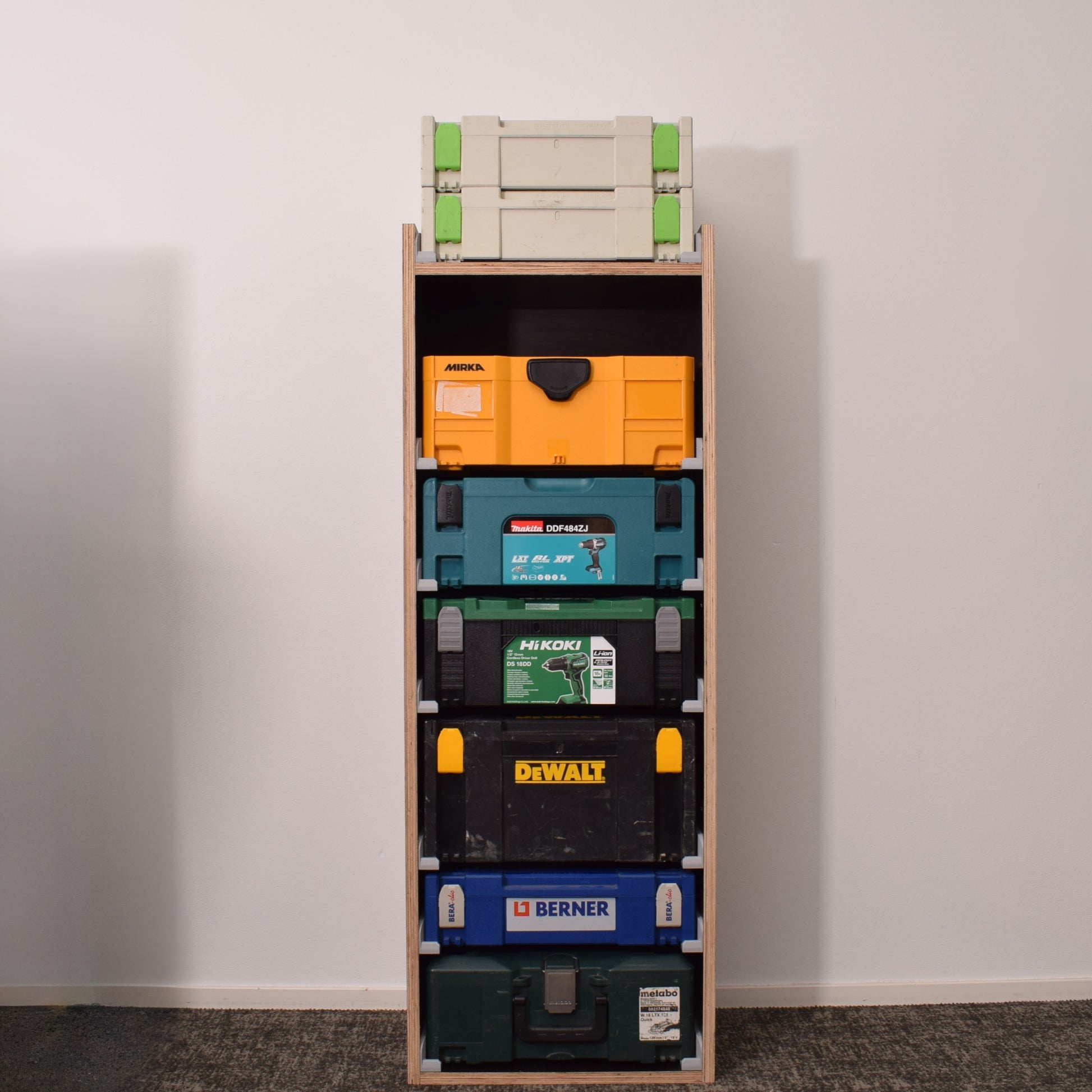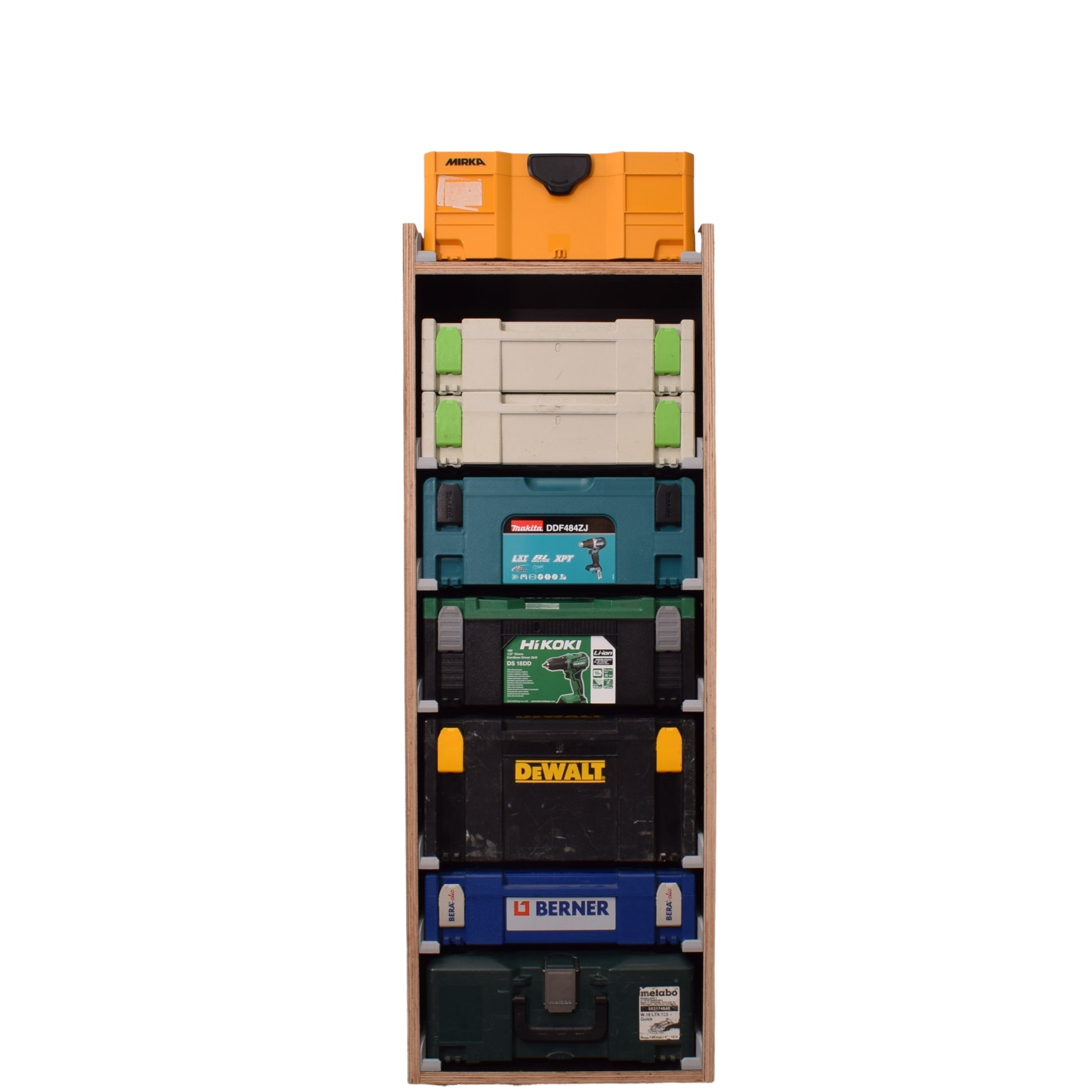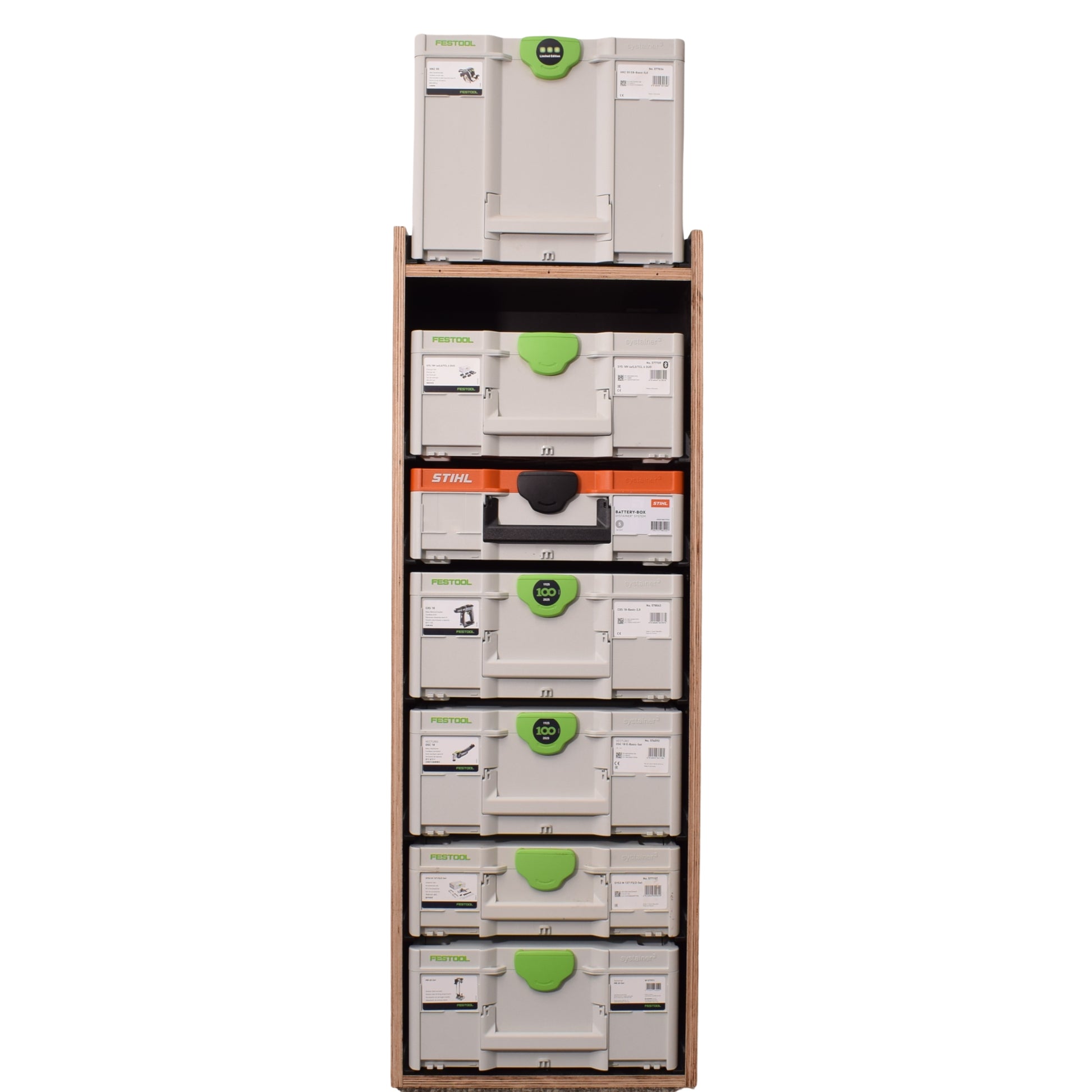 Deze compacte kast is dé oplossing om uw Systainer en Sortainer netjes en efficiënt op te bergen. Perfect voor in de werkplaats én bedrijfsbus, gemaakt van robuust betonplex en ontworpen voor professioneel gebruik.